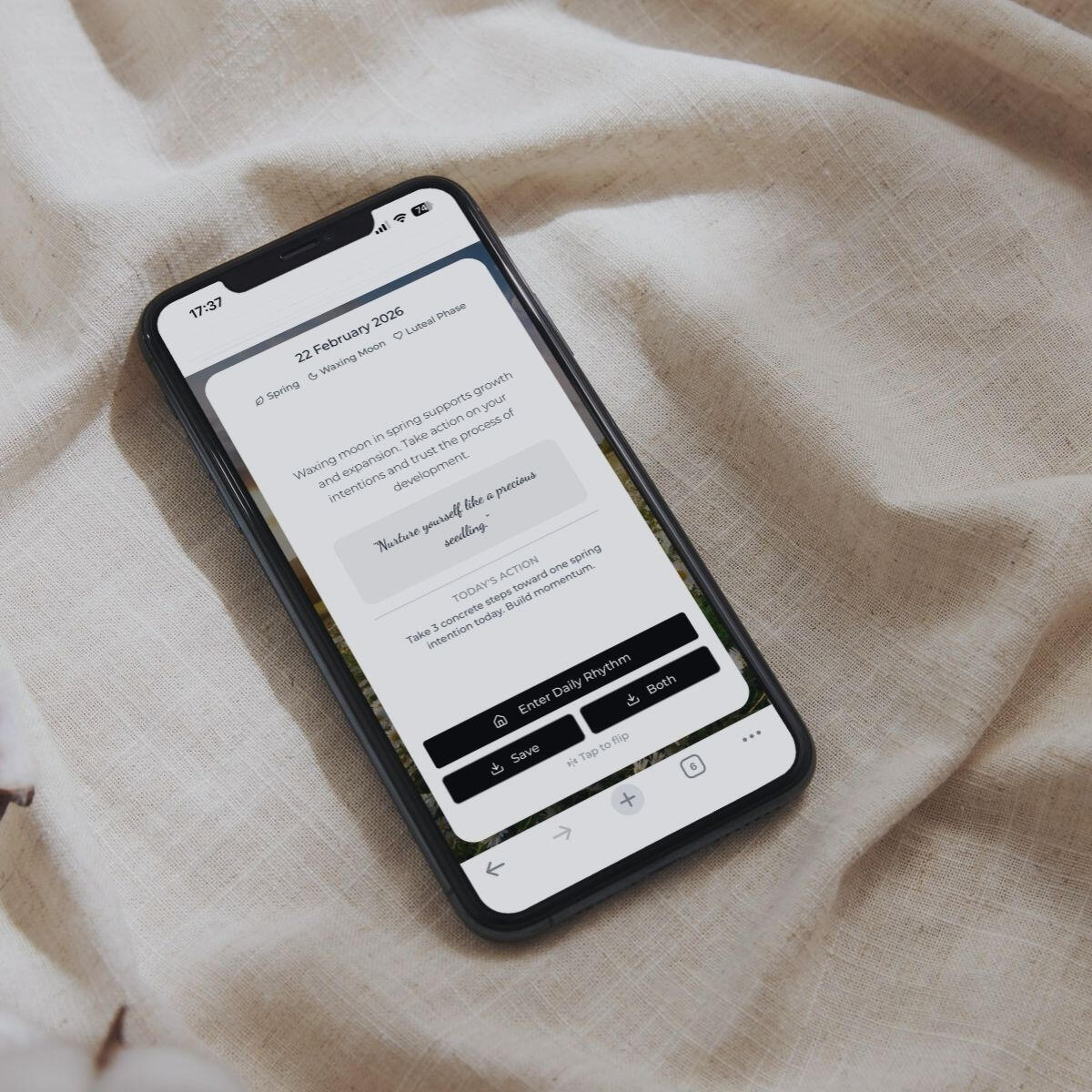 The Cycles of Nature App gives you daily rhythm guidance aligned with seasonal energy, moon phase and your natural rhythm.